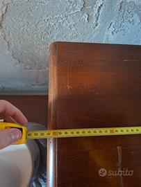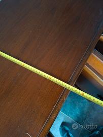 2 cassetti centrali con maniglie a anello in metallo brunito, ideali per posate o documenti.