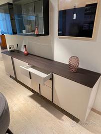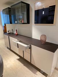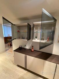 credenza Alf mod. DA.TO dim.: 256L.x44profx81,5h e 2 Pensili vetrina GHOST con illuminazione dim.: 64x64x34,5 prof.