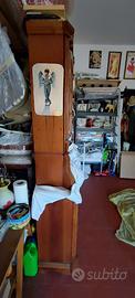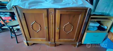 Vendo per necessità di spazio elegante credenza con alzata in stile classico (Arte Povera), perfetta per dare un tocco di calore a soggiorno o taverna. Il mobile è molto robusto, ben conservato e offre una grandissima capacità contenitiva. Dettagli del mobile: Alzata superiore: 2 ante con vetro lavorato (effetto satinato/decorato) e ampi ripiani interni. Base inferiore: 2 ante in legno pieno con formelle lavorate e vani spaziosi. Stile: Cimasa superiore decorata a "conchiglia" e dettagli intagliati sui montanti. Condizioni: Ottime, legno lucido e ferramenta originale. Dimensioni: Larghezza: 134 cm Altezza: 208 cm Profondità: 34 cm Note per l'acquisto: Visione: Disponibile per visione di persona senza impegno a Pisa (vicino aeroporto/superstrada FI-PI-LI) Logistica: Il mobile si trova già al piano terra (garage), facilitando enormemente le operazioni di carico. Il mobile è smontabile in due blocchi (base e alzata), il che lo rende facilmente trasportabile anche in un furgoncino o un SUV capiente. Extra: In vendita separatamente sono disponibili anche tavolo coordinato e sedie antiche per chi volesse completare l'arredo. Prezzo: € 350 trattabili
