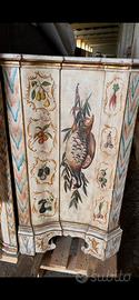 Credenza spagnola dipinta, altezza 2,40 lunghezza 1,40 profondita pezzo basso 52 pezzo alto 36. Nel pezzo basso 3 cassettoni e 2 cassettini.