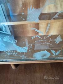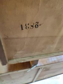 Pezzo unico di arredamento vintage italiano, credenza con alzata a vetrina risalente agli anni '50-'60, in perfetto stile Paolo Buffa — uno dei maestri indiscussi del design italiano del Novecento. Il mobile si compone di due elementi: Credenza base — 174 x 48 x 140 cm (h) Legno pregiato in ottime condizioni, ante con intaglio geometrico a piramidi tridimensionali di pregevole fattura artigianale. Due ante laterali, due cassetti centrali e due sportelli inferiori. Numero di catalogo originale timbrato sul retro: 2831. Alzata a vetrina — 120 x 38 cm Vetro inciso a mano con motivi floreali e fauna — dettaglio di rara eleganza, tipico della produzione artigianale italiana di quegli anni. Pezzo identico quotato su Pamono e 1stDibs tra i 3.500 e 4.000 €. Condizioni buone, con naturali segni del tempo coerenti con l'età e la storia del pezzo. Ideale per chi ama il design italiano autentico, gli interni vintage o il recupero di mobili di qualità superiore. 🪑 Chi fosse interessato, è disponibile anche il tavolo abbinato con 4 sedie originali dello stesso periodo — set completo da valutare insieme. Prezzo credenza: 1.400 € trattabili Set completo (credenza + tavolo + 4 sedie): prezzo da concordare Ritiro a vista. Si valutano proposte serie.