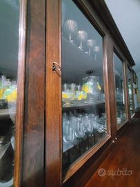 Cristalliera soggiorno in legno tinta noce arte povera: un tocco classico per ambienti senza tempo. Un mobile che unisce funzionalità, fascino retrò e qualità artigianale. Questa credenza rustica è il