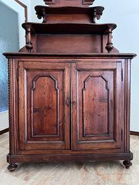 Splendida credenza con piattaia in abete massiccio risalente alla fine dell’Ottocento, realizzata in stile arte povera.