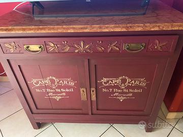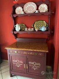 Vendo credenza con piattaia color bordeaux, piano in marmo