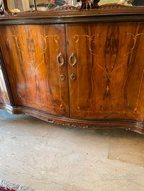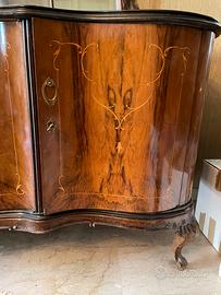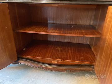 Elegante credenza in stile Chippendale, realizzata in legno lucidato con intarsi decorativi.