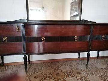 VENDESI CREDENZA CON SPECCHIERA SAGOMATA,EVENTUALMENTE SEPARABILE ED UTILIZZABILE ANCHE A PARTE.STILE INGLESE ,RISALENTE ANNI'50 INTERAMENTE IN MOGANO CON RIPIANO RICOPERTO IN VETRO.DUE ANTE CENTRALI E DUE LATERALI. DIMENSIONI: H 96; PROF.52; LUNG.2,47. SPECCHIO H.1,48 E LARG.1,22. RICHIESTA EURO 150.TRASPORTO A CARICO ACQUIRENTE