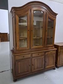 Credenza con vetrina in legno massello tinta noce , interno vetrina e cassetti tappezzati, i bordi dei vetri sono diamantati, lung. 168 h. 237 p. 51/43 escluso trasporto e montaggio
