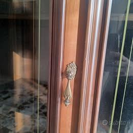 Mobile vetrina in legno. 2 ante superiori in vetro, un cassettone, 2 ante inferiori, 3 ripiani interni.