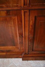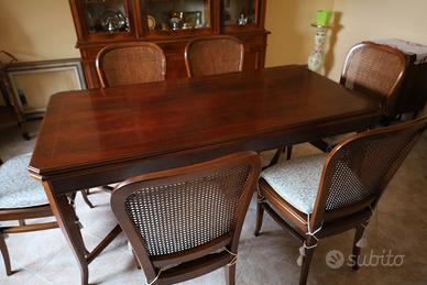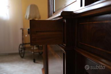 Credenza con vetrina in legno massello, ideale per ambienti classici con tavolo e sedie