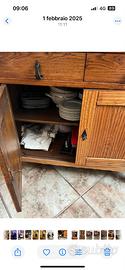 Credenza con vetrinetta scomponibile. Puro legno massello in ottima condizione. Pezzo sottostante larghezza 1 mt profondo 75 cm e altezza 95 cm. Vetrinetta soprastante con vetro opaco altezza 94 cm larghezza 98 cm.