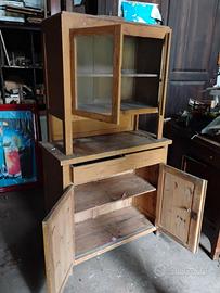 Simpatica credenza con vetrinetta in buono stato generale, qualche piccolo restauro da eseguire, H193 cm L 105 cm P 50 cm da ritirare in loco.