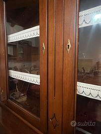 Elegante cristalliera in legno massello finitura noce, dal gusto classico e raffinato.