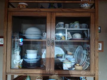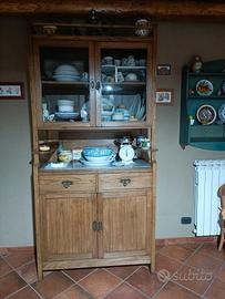 Credenza restaurata priva di tarli vetri originali colore legno, misure larghezza 110 profondità 50 altezza 225