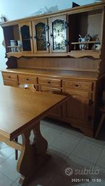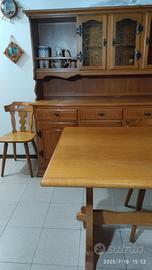 vendo credenza cucina con tavolo e 4 sedie in rovere massello, tenuta bene.
