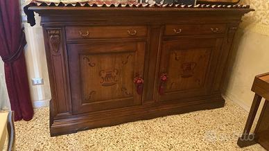Causa trasloco, vendesi, anche separatamente, credenza cucina in legno realizzata a mano e mobili sala da pranzo sempre in legno