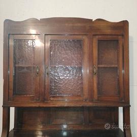 Credenza d'epoca con alzata con vetri decorati