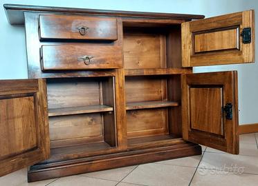 Modello molto interessante, di un piccolo mobile di ingresso arte povera, 2 porte grandi 1 piccola e 2 cassetti Lunga 123 Alto 94 Profondo 35. !CONSEGNA A MANO!