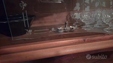 Mobile con vetrina. Vetri a scorrimento. Cassettiera a 5 cassetti. Un vetro della vetrina sopra è rotto come si può vedere in foto. Misure: L 168 P 50 H 160. Ritiro carico dell'acquirente a Montegrotto. Gli oggetti all'interno del mobile non sono compresi.