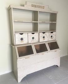 Vendo credenza in legno decapato, con mensole, cassetti e ante vetrina vasistas Misure: 158,5 x 49,5 h 206 cm
