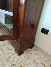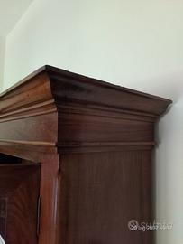 Credenza antica dell'800 . restaurata a nuovo con due ante, tre mensole, vetri ricamati dell'epoca, e serrature originali, botola superiore Altezza 2 metri Larghezza 1,35 cm Profonda 40 cm