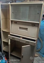 ESCLUSIVA DISPENSA ANNI 60 COLOR PANNA. OTTIMO STATO E AUTENTICA IN TUTTE LE SUE PARTI, VETRI, MANIGLIE, APPENDI MESTOLI INTERNI.
