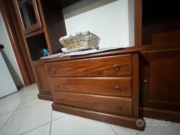 Mobile color ciliegio PARI AL NUOVO. Unico proprietario. Le misure sono indicate in una delle foto pubblicate. Si offre smontaggio gratuito e aiuto nel caricare su automezzo. Il mobile si trova a livello della strada con possibilità di parcheggio frontale al locale per la consegna.