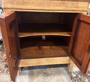 Credenza a due ante vintage con effetto materico, e patinatura antichizzata. Con decupage pittorici ai lati.