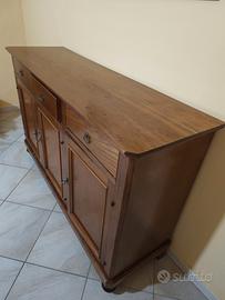 - credenza/madia in legno tinta noce, con 3 ante e 3 cassetti.