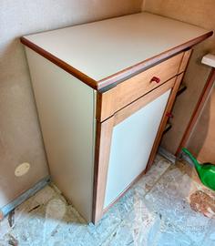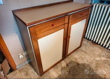Credenza e mobiletti realizzati artigianalmente, in legno molto robusto. Adatti a una taverna in stile rustico o riverniciabili se si vuole ottenere uno stile più moderno.