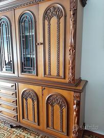 Arredamento completo per sala. Credenza con vetrina H215 - L267 - P49 Tavolo H80 - L190 - P90 N°6 sedie con rivestimento Jacquard