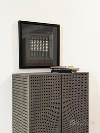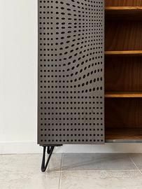 COSTO TRASPORTO DA CONCORDARE L 70 - P 41 - H 140 cm Credenza Ela di Stones in legno di mango massello su piedini in metallo in finitura è di colore grigio con una particolare lavorazione che riproduce un elegante effetto ottico.