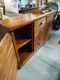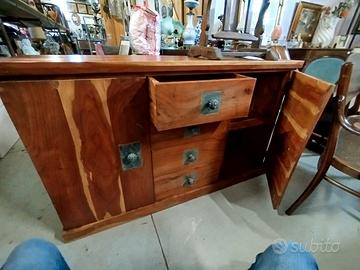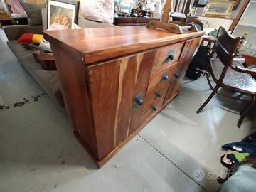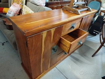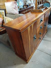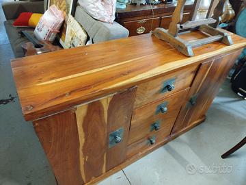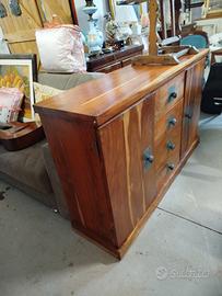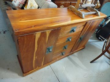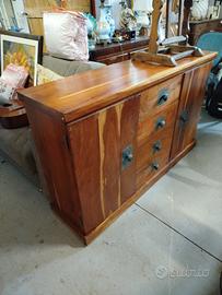 Credenza etnica in legno teak con doppia anta e 4 cassetti. Misure: (150 x 40 h. 91)