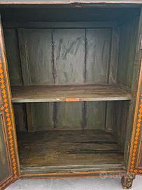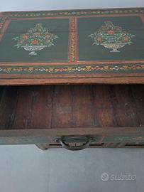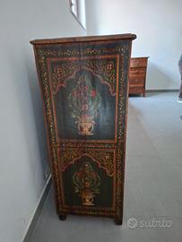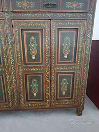 Credenza Tibetana antica in legno massello con decorazioni policrome dipinto a mano.Mis.alt.113 prof.47 lung.142.