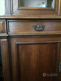 Mobile in noce composto da base L127xH100xP57 e vetrina L120xH110xP37 in legno massello con necessità di un leggero restauro.