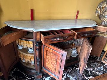 Credenza fine 800 intarsiata con piano in marmo ed alzata (non in foto).