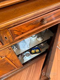 Vendo a malincuore questa credenza a doppio corpo in radica di noce, come da foto: quattro scaffali superiori e due ampi inferiori, ottimo stato. Un pezzo d’arredamento unico oltre che per antiquariato anche per stile modernariato.