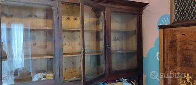 Bellissima credenza fine 800inizio 900,dodici cassetti e alzata con vetrinetta e ripiani,il mobile non presenta alcuna traccia di muffa,non è danneggiato purtroppo è andata persa la ferramenta delle ante così come le maniglie originali ideale da mettere in un locale ristorante come servizio,se interessati al mio numero allego anche video,vendesi causa trasloco €800