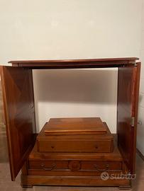 Credenza francese con spazio interno per contenere la televisione. Ante apribili e richiudibili con chiave. È presente anche un cassetto.