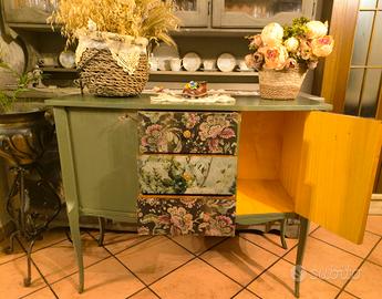 credenza francese in legno Restyling. Stile Luigi XV restaurata e ristilizzata. perfetta. Mobile di stile e fascino . pezzo unico. possibile trasporto.