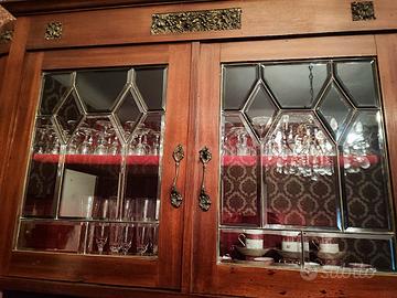 credenza in legno scuro nella parte sotto doppia anta e doppio cassetto nella parte superiore due ante a vetro molato profondità 53 cm altezza 218cm larghezza 144cm NO spedizione