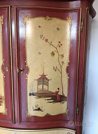 MOBILE GIAPPONESE DECORATO A MANO COLOR ROSSO GIALLO DIMENSIONI CM 100X160XPROF.CM 50 INDICATIVAMENTE ANNI '50/60
