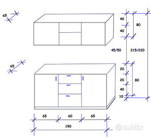 Vendo credenza ikea personalizzata in condizioni come nuove, causa trasferimento. Le misure sono riportate nella seconda immagine. La credenza é in vendita a 400 euro, é costata 800. Disponibile a visionarla senza impegno. Non spedisco, smontaggio a carico dell' acquirente.