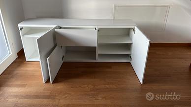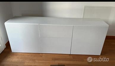 Credenza ikea bianca con top in vetro bianco. Tre ante ed un cassetto. Misure 180x40x64 vendo a € 150