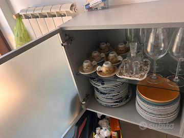 Vendo bellissima credenza/modulo contenitore IKEA modello Mattila (fuori produzione), caratterizzata da un design minimalista e moderno, perfetta sia per la casa che per l'ufficio. Il mobile è molto capiente e si presenta in ottime condizioni generali. È ideale per riporre documenti, stoviglie o come elegante vetrina espositiva. Caratteristiche principali: Struttura: Robusta in legno laminato color grigio chiaro/alluminio. Ante: 4 ante in vetro temperato con profili in metallo satinato. Ripiani: Interni spaziosi per un’organizzazione ottimale. Stato: Usato ma ben conservato, senza graffi profondi o danni ai vetri. Dimensioni indicative: Lunghezza: circa 160 cm Profondità: 40 cm Altezza: 100 cm
