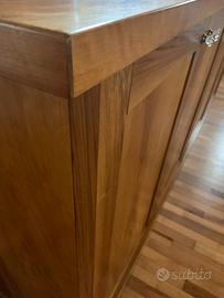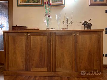 Vendo credenza a 4 ante, ripiani interni, struttura di multistrato impiallacciata con cartella spessore 2 mm di Noce Nazionale, è un prodotto artigianale eseguito su progetto, finitura Naturale a poro aperto a cera d’Api della BIOFA’, ritiro a cura e carico di chi la acquista