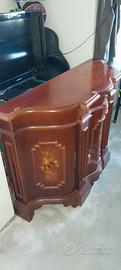 Credenza vintage in legno massello finitura noce tre ante, un cassetto. Misure: larghezza 42,5 cm, altezza 86 cm, lunghezza 128 cm. Ritiro in sede, no spedizione.