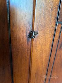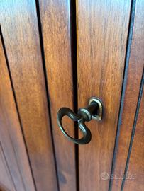 Vendo credenza in noce massello in perfette condizioni. La credenza ha 3 ante (con 2 ripiani regolabili l’una) e tre cassetti. Le sue musure sono: lunghezza 210cm, profondita della parte centrale 50cm e altezza 106cm.