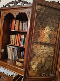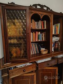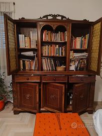 Credenza in ciliegio anni 50/60 intarsiata a mano, la parte superiore e quella bassa sono divisibili. Euro 400