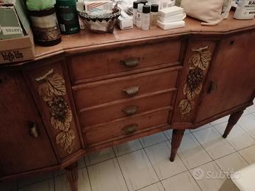 Vendo credenza in legno anni 50. Arte povera con disegni uva. Misure: Aldezza 0,89 cm, Lunghezza 1,60 cm, Profondità 0,45 cm.