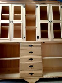 Per cessata attività, vendo credenza in legno artigianale (da finire) Credenza due piani 2.00 larghezza x 1.90 altezza x 0.45 profondità. 5 cassetti